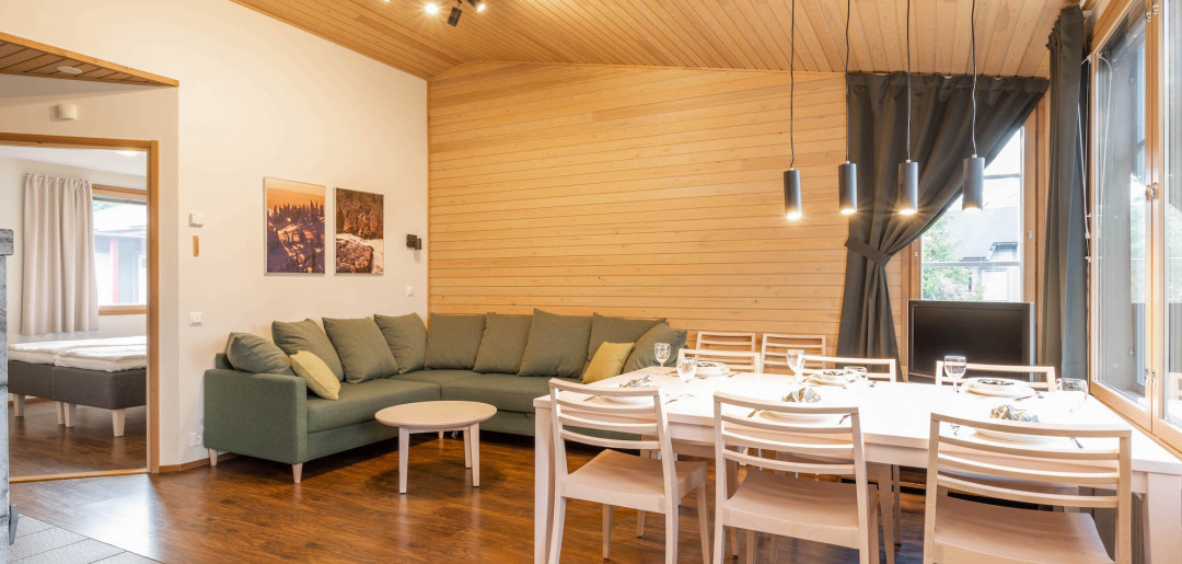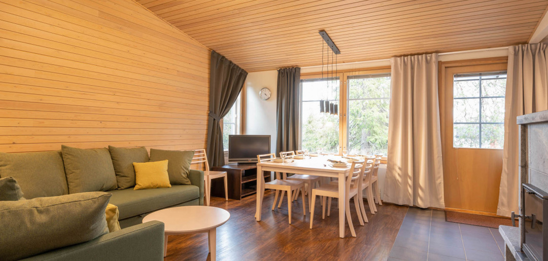 MastonAitio cottages are designed to meet the needs of active groups. Three separate bedrooms, a well-equipped kitchen, a separate WC, and a private sauna provide a smooth stay. At the end of the day, you can even relax in your own bathtub. In the living room area, the sofa bed can be used as an extra bed for 1‒2 persons without extra charge.