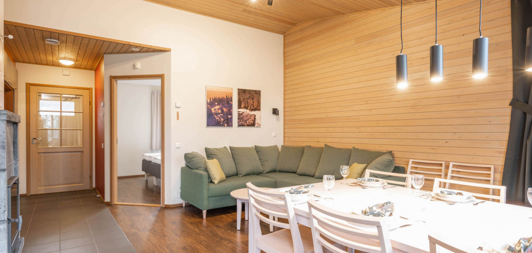 Peaceful semi-detached cottages with space for the whole crew. Nature lover’s Lapland atmosphere at the elegant Masto area, surrounded by nature. The apartment features a private sauna, fireplace and terrace.