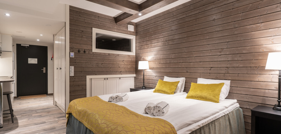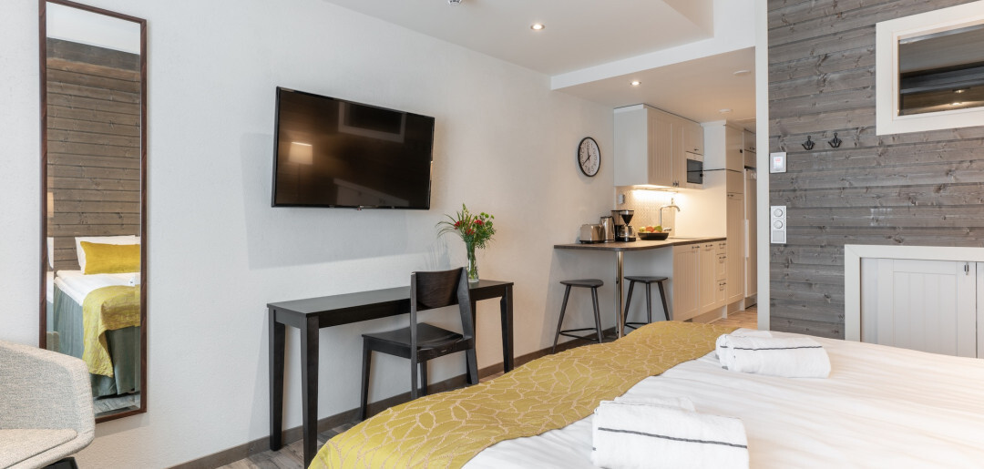 Brand new and cozy hotel room with a private sauna and a kitchenette. An appetizing breakfast is included. Located right next to Valtavaara Nature Reserve.